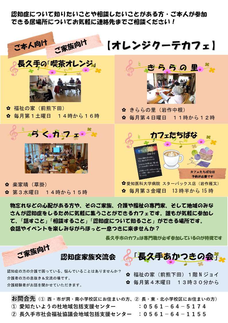 カフェたちばな 場所:スターバックスコーヒー愛知医科大学店 問合せ:愛知医科大学病院認知症疾患医療センター ☎0561-61-1878 |