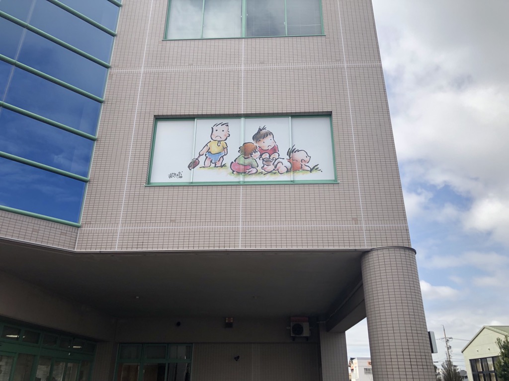 保健センター(長久手市岩作城の内101番地1)の2階の窓ガラスに「子どもの絵」をラッピングしました。