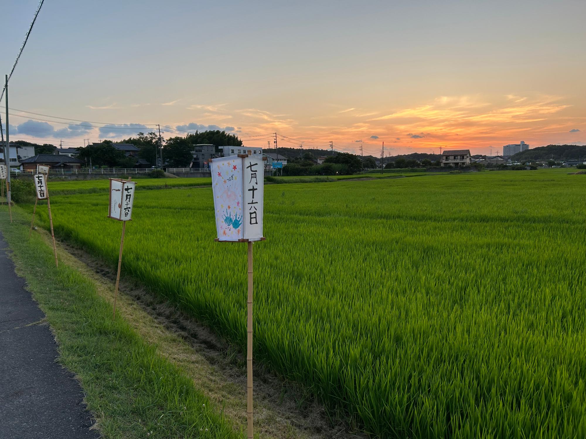 虹を待つ田んぼの夕暮れ_夏のある日に雨がざーっと降った後に、空がピンクっぽい色に変わって来たと家にいても異変を感じて、思わず家の外にカメラを持って飛び出した。結局、虹は出なかったけど、夏らしい特別な風景を写真に収められたことと、改めて自然豊かな良い土地に住まわせてもらっていることに、とても幸せな気持ちになりました。