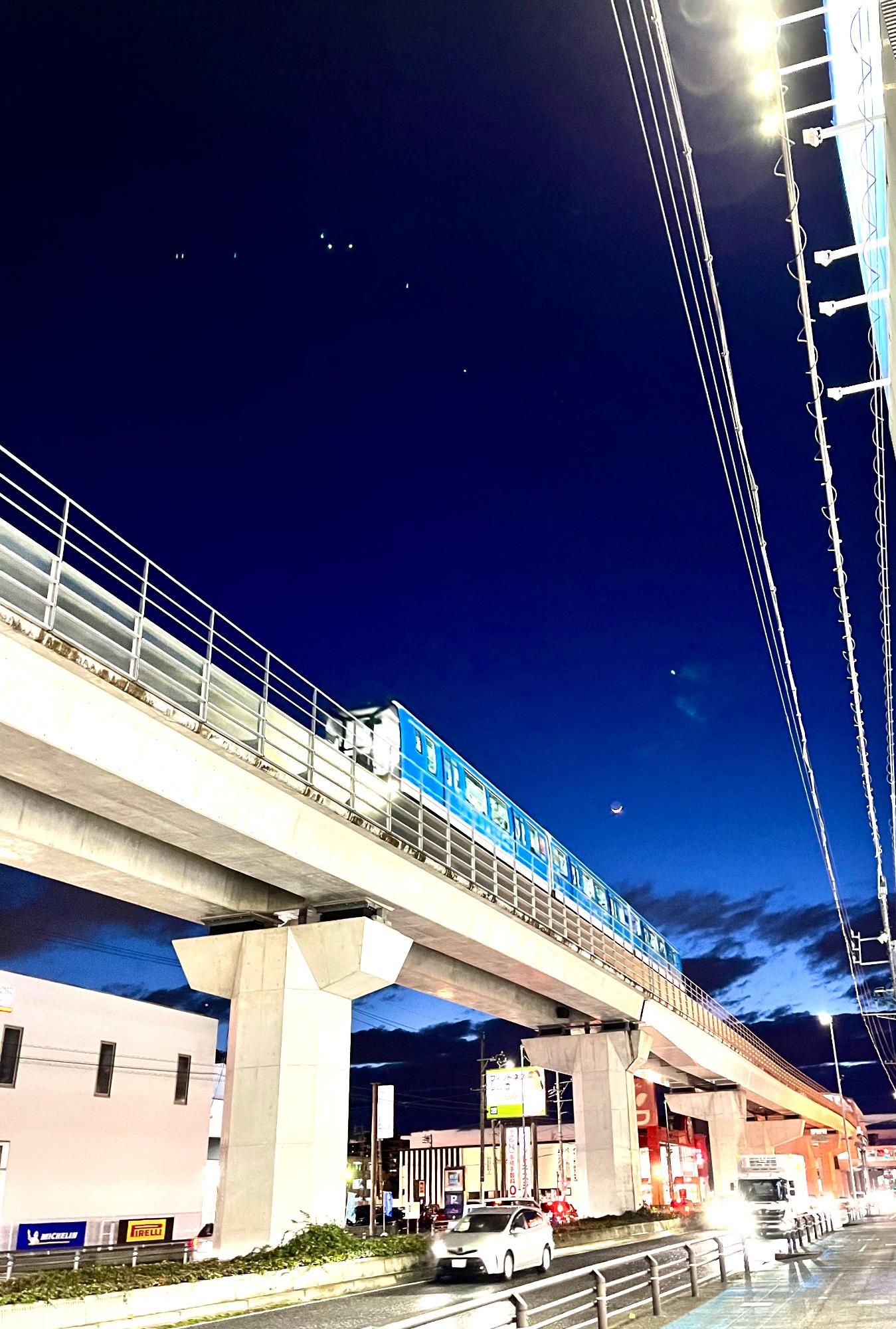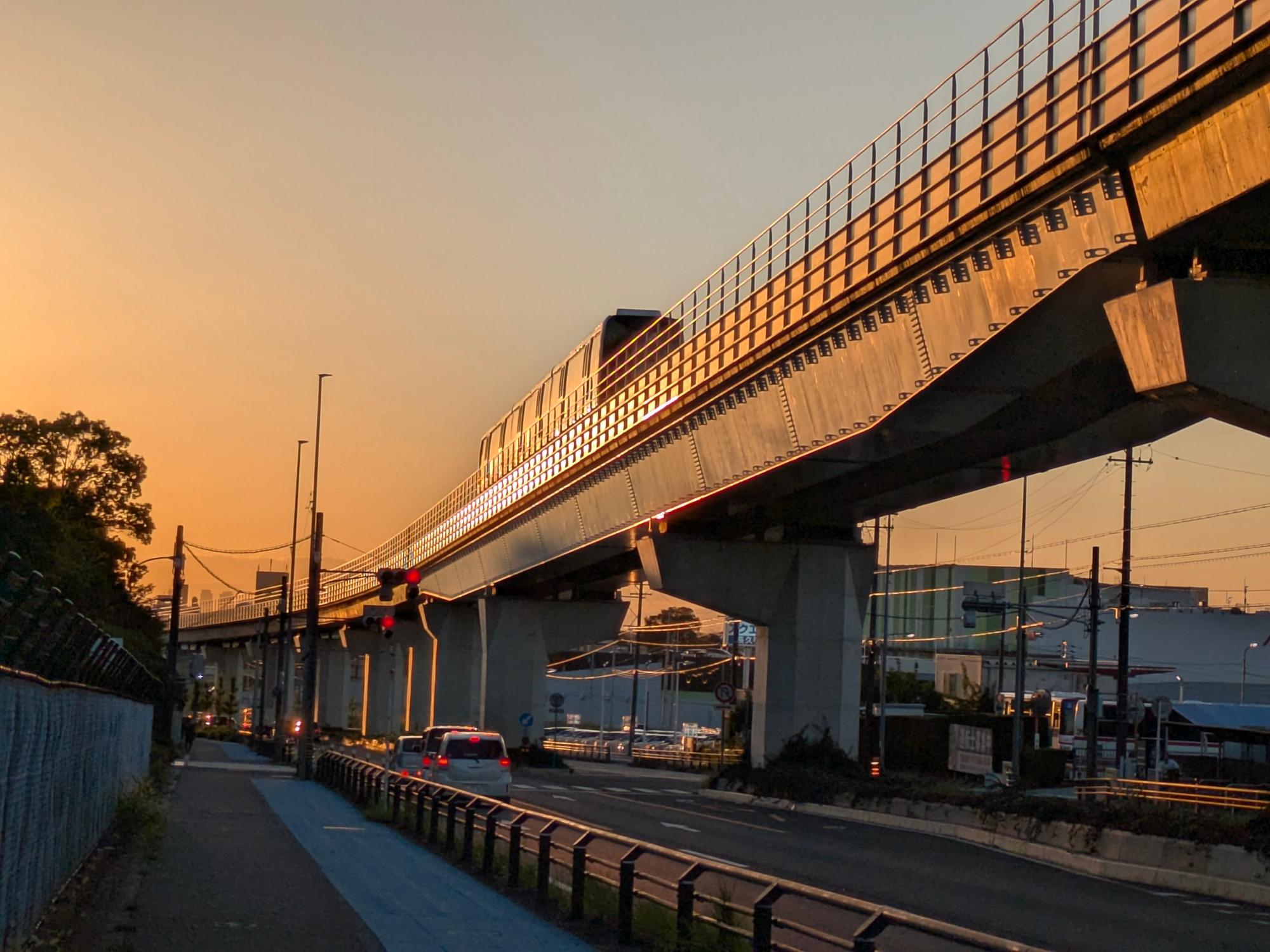 帰路を急ぐ_歩いて帰る途中、リニモとすれ違った時に撮った一枚です。